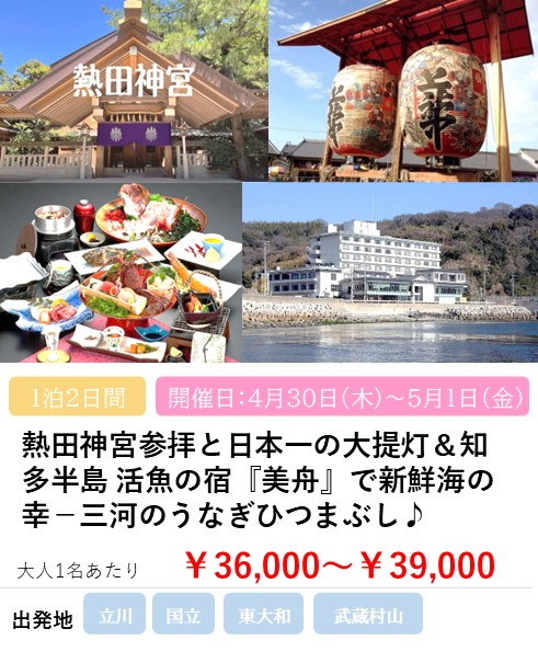 日本一の大提灯と熱田神宮参拝 知多『美舟』活魚とうなぎの膳