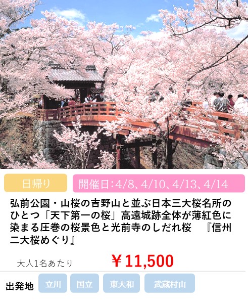 弘前公園・山桜の吉野山と並ぶ日本三大桜名所のひとつ「天下第一の桜」高遠城跡全体が薄紅色に染まる圧巻の桜景色と光前寺のしだれ桜 『信州二大桜めぐり』